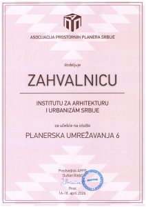 За учешће на изложби, Институту за архитектуру и урбанизам Србије додељена је захвалница Асоцијације просторних планера Србије, као признање за допринос представљању и унапређењу планерске праксе.
